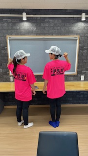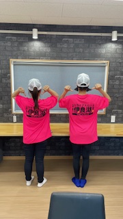 今年のTシャツはヘビーピンクカラーです。(年齢が増すと勇気のいる色!!)